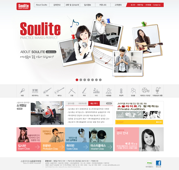 소울라이트 페이지 정보 글쓴이 관리자 작성일2013-07-10 21:50 조회5,985회 댓글0건 이전글 다음글 목록 본문 국내 유명 실용음악학원, 보컬트레이닝, 각종 악기, 입시등 알차고 체계적인 커리큘럼 이전글 다음글 목록