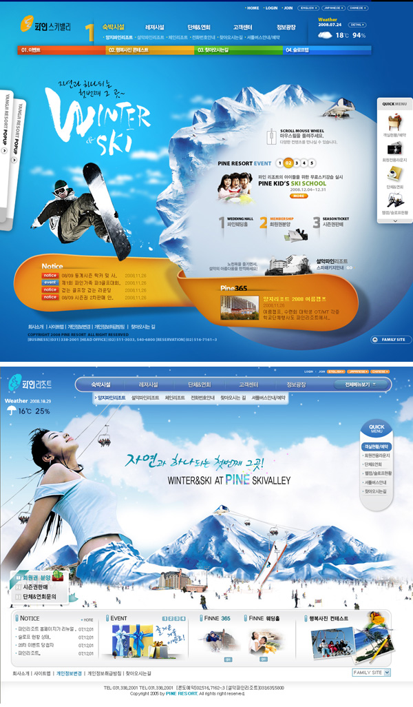 1년중 가장 중요한 겨울시즌을 대비하여 대대적으로 웹사이트 개편작업에 들어간다.