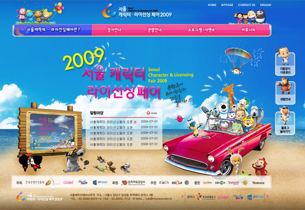 2009년 캐릭터페어가 삼성동 코엑스에서 열리게 된다. 7월22~29일 (코엑스 전시관) 한국문화컨텐츠 진흥원( www.kocca.kr ) 에서 주최를 하는 이번 전시회는... 전시회 홈페이지를 "쿤스 (www.koons.co.kr )" 에서 제작하게 되었다. - 쿤스 웹에이전시 사업부 02)555-5166 - [이 게시물은 관리자님에 의해 2009-06-17 22:47:09 [복사본] kooons business_folio에서 복사 됨]