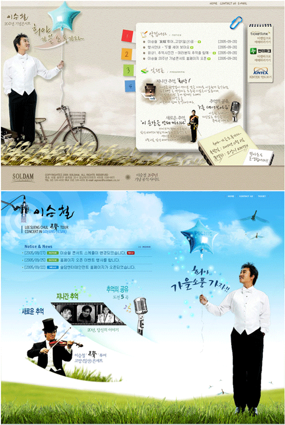 콘서트 이벤트 사이트 페이지 정보 글쓴이 정혜임 작성일2006-06-13 19:44 조회7,011회 댓글0건 이전글 목록 본문 '眞聲’투어 고양(일산) 공연에서 특별하게 마련한 공연테마와 이벤트들을 통해 예전의 사연을 다시 한번 추억해내게끔 제작된 사이트. 이전글 목록