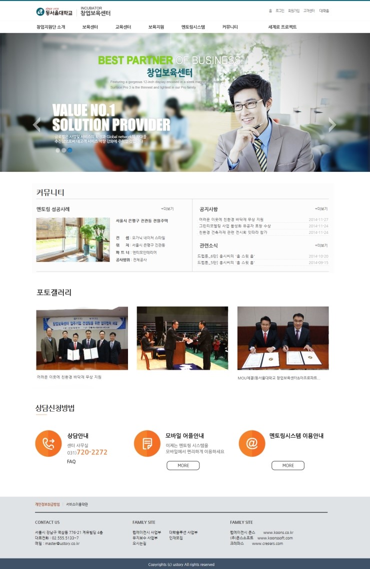 1. 창업지원(보육)단 홈페이지 솔루션